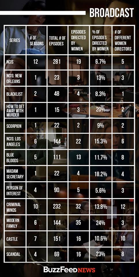 Why does this rile me up so much? Because this is 2015. Because there is NO reason why American Horror Story would have fifty episodes, and not one woman in Hollywood was seen as good enough to direct a single one, or why a show like Scandal is in the lead with 23% of its episodes directed by women — that’s just barely almost a quarter. Yet women and men are graduating from film school in equal numbers.