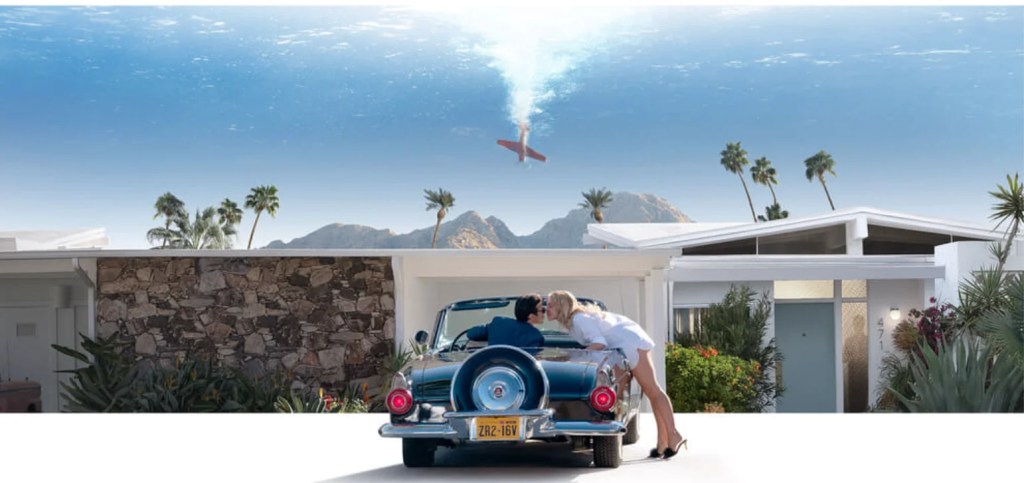 The premise of the film will feel familiar to fans of Invasion of the Body Snatchers — originally a 1956 American science fiction horror film directed by Don Siegel and then remade in 1978 by Philip Kaufman — and The Stepford Wives — originally a “feminist horror” novel by Ira Levin, famously also the author of Rosemary’s Baby, that was then made into two feature films, the 1975 version directed by Bryan Forbes and the 2004 version directed by Frank Oz. Alice Warren (Florence Pugh) and her husband Jack (Harry Styles) live in Victory, a Palm Springs-esque world of mid-century modern perfection. Everything is perfect and clean and cheerful, the makeup on point and the cars immaculate. Jack heads off to work each day in his little sports car, lunchbox in tow, while Alice occupies herself cleaning the house, preparing dinner, and participating in coordinated choreographed dance routines worthy of Busby Berkeley. When Jack gets home, she is at the door, ready to greet him with a cocktail in hand, dinner served, and, apparently a body ready for sex on the dining room table.